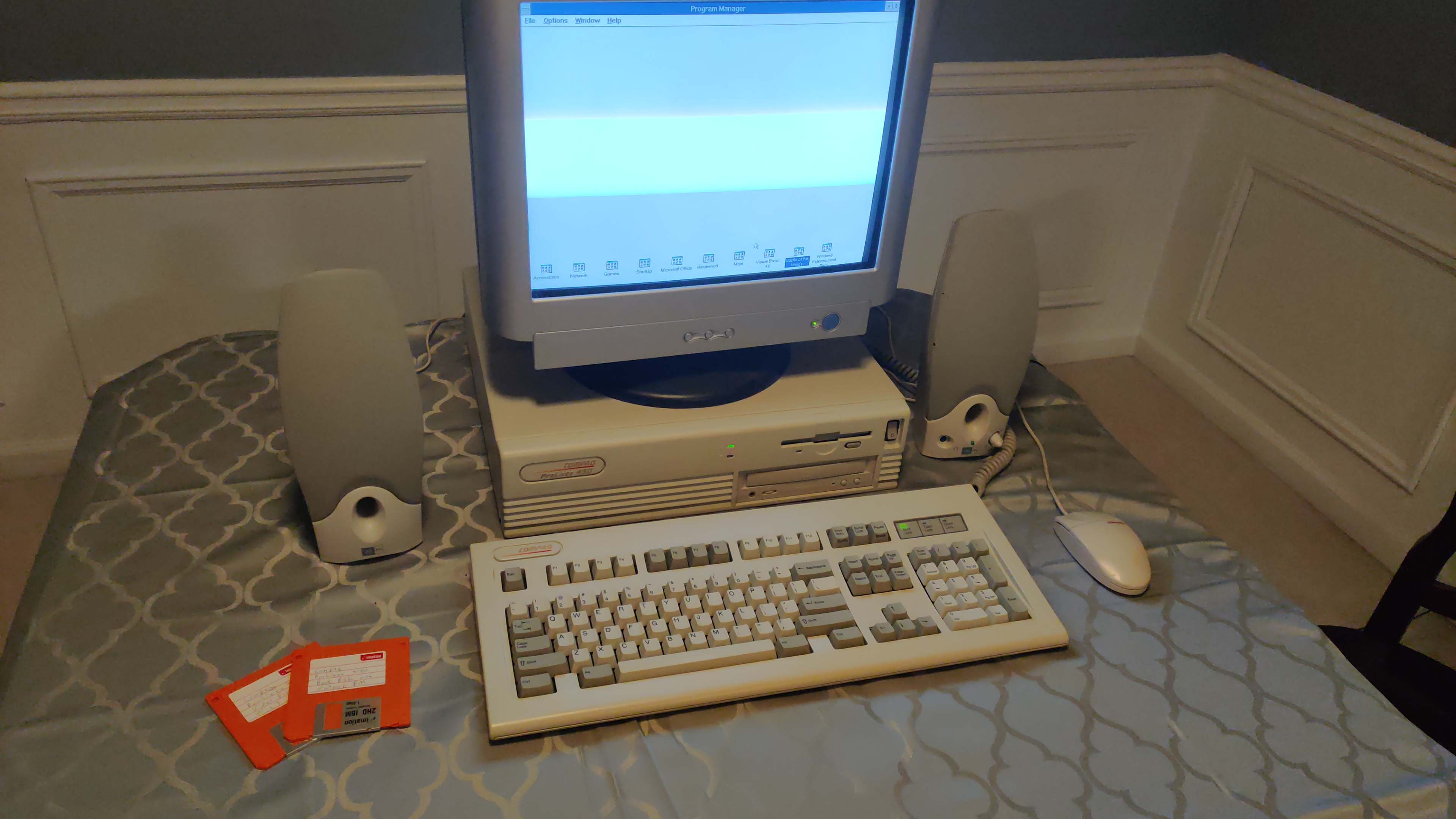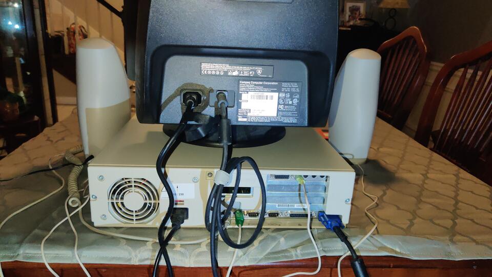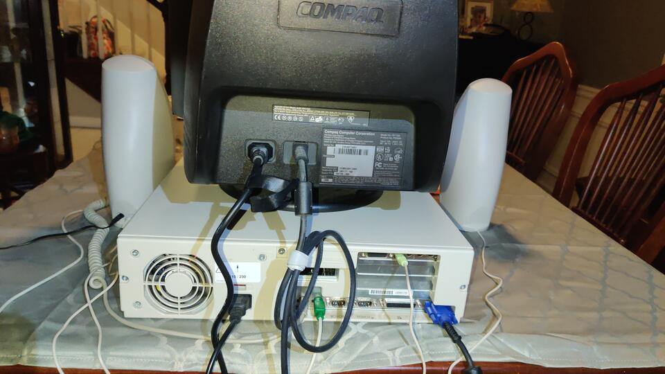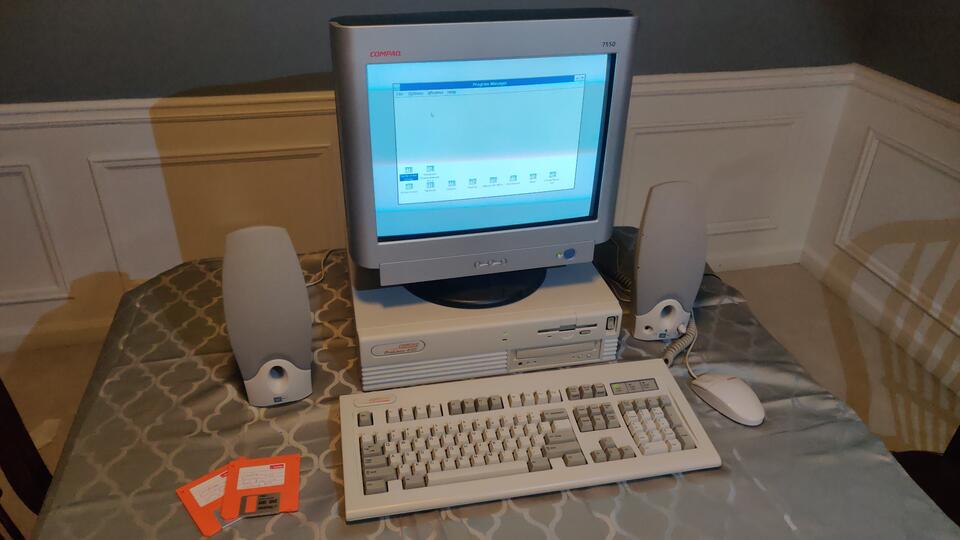 Fully working upgraded Compaq Prolinea 4/50. 4.3 Gig spinning disk Seagate hard drive, maxxed out 16Meg RAM, sound card, CD-ROM drive, 1.44 Meg floppy, 486DX2 CPU @ 50Mhz, all components matching Compaq branded. Loaded with games, Windows 3.11, ready to play. Plenty of games preloaded, if you have a special game you want, contact me, we can make it happen. CD-ROM, sound card, and hard drive are after-market upgrades, the rest are official Compaq components. Comes with computer, monitor, keyboard, mouse, keyboard dust cover, and speakers. If you live within 30 miles of Marietta GA, I can deliver and setup in person. Price: $499.00BuyPrice: $499.00Buy |